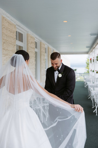 Following their first look, they shared private vows on the Perry Hotel’s stunning wraparound porch, overlooking Lake Michigan. With the water stretching out behind them and the quiet intimacy of the moment, it was one of those memories that felt sacred — a pause in the day that belonged just to them.