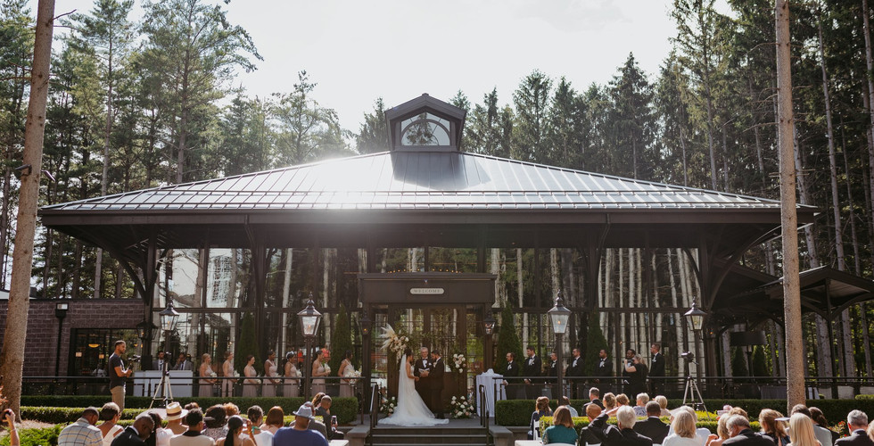 Shepherds Hollow Golf Club is a unique luxury venue for the elegant bride. The venue is surrounded by a beautiful view of tall pines and rolling hills, giving a feeling of a secluded, peaceful location! This venue features a spacious reception area with black and white checkered floors and vaulted ceilings, AND the most beautiful outdoor courtyard for the most luxurious ceremony. Truly designed like a european castle courtyard. What you’ll get with this venue is a high end experience from start to finish, and you can end your day with sunset photos in the natural area around this gorgeous venue.